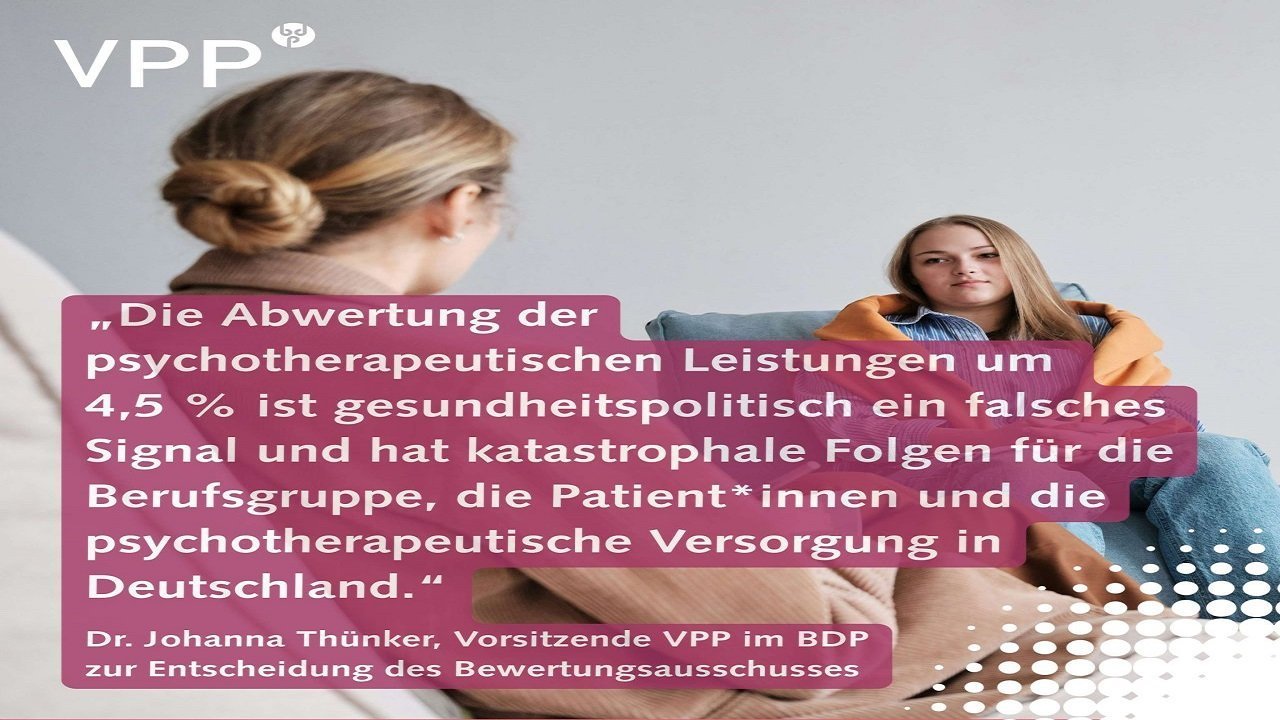 Yesterday, a crucial decision was made regarding psychotherapeutic care in Germany: The evaluation committee yielded to pressure from the Federal Association of Statutory Health Insurance Funds (GKV-SV) and decided to reduce the value of outpatient psychotherapeutic services by 4.5% from April 1, 2026.