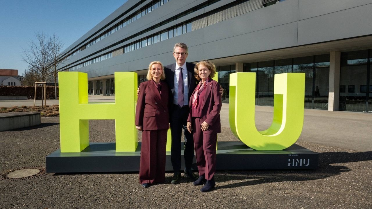 Ceremonial change of leadership at HNU: After 20 years at the helm of Neu-Ulm University of Applied Sciences, Prof. Dr. Uta M. Feser officially handed over her presidency to Prof. Dr. Julia Kormann on February 27, 2026.
