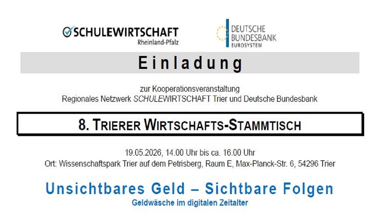 The regional network SCHULEWIRTSCHAFT Trier, together with the Deutsche Bundesbank, invites you to an exciting cooperation event.