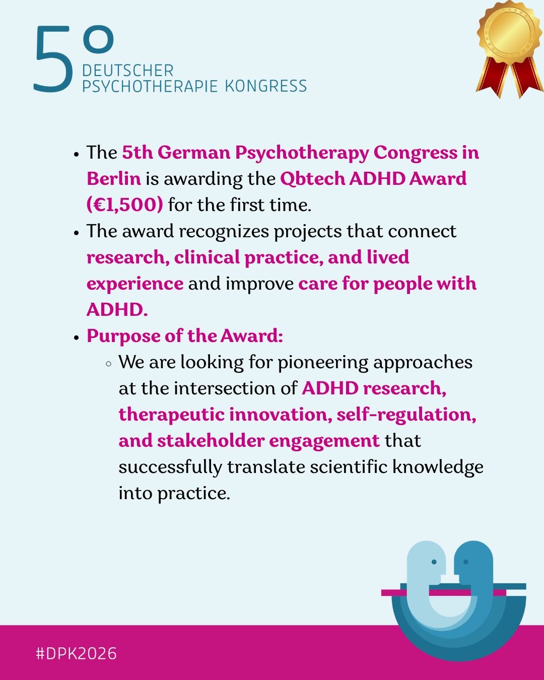 Call for Submissions: Qbtech ADHD Award – 5th German Psychotherapy Congress 2026 / Deutscher Psychotherapie Kongress