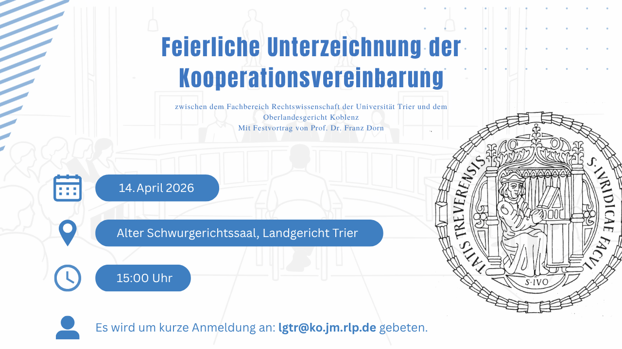 As a graduate of the University of Trier, it is a particular honor and pleasure for me that we have succeeded in concluding a cooperation agreement between the Faculty of Law of the University of Trier and the Higher Regional Court of Koblenz.